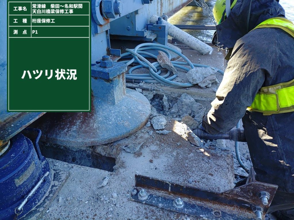 常滑線 柴田~名和駅間 天白川橋梁保修工事